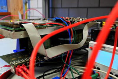 A first communication test has been successfully performed on the first new BrainScaleS wafer module.