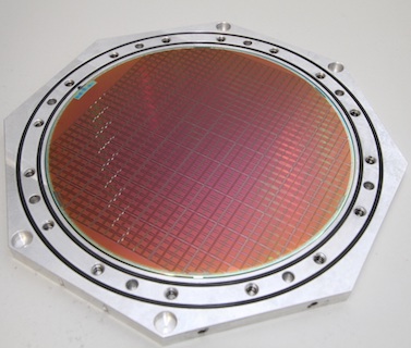 | BrainScaleS-1 Neuromorphic Compute System full wafer (before post-processing) in the wafer mounting bracket. The 20cm wafer contains 48 reticles with 8 HICANN each. In total 196.608 point-neurons and 44.040.192 synapses. | ![]() | Heidelberg University (CC BY-ND 4.0) |