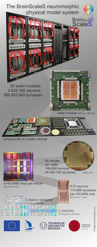 | The BrainScaleS neuromorphic system: single synapse to 20 wafer systems platform system view. (March 2016) | ![]() | Heidelberg University (CC BY-ND 4.0) |
